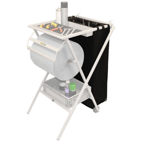 A quick and easy addition to the B-G racing folding utility work station, this nylon fabric bin facade attaches using Velcro tabs and hides an unsightly bin bag. Fold flat for storage.